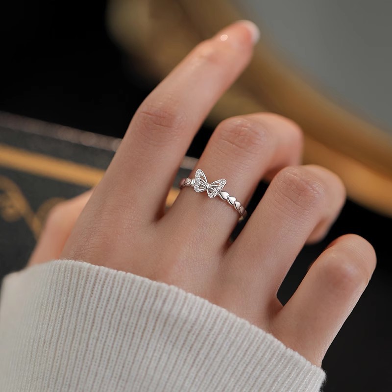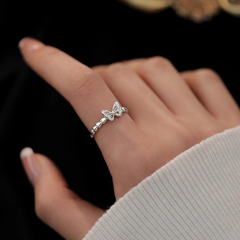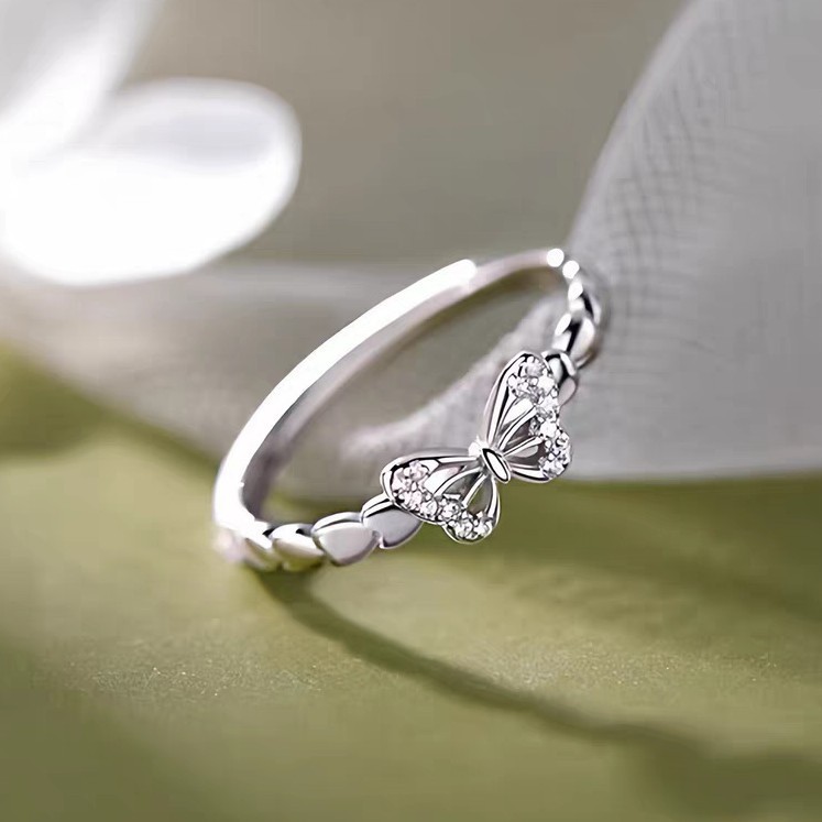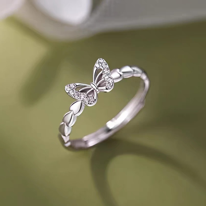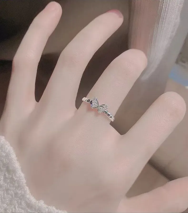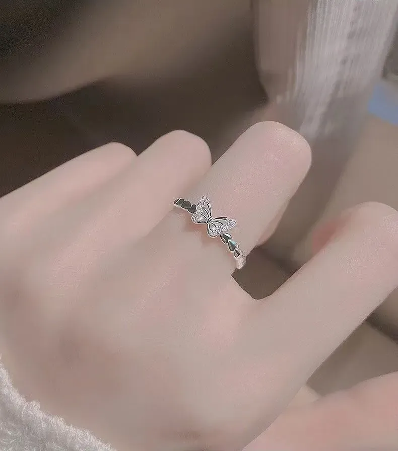Elegant Butterfly CZ Ring for Women – Dainty Crystal Adjustable Band
