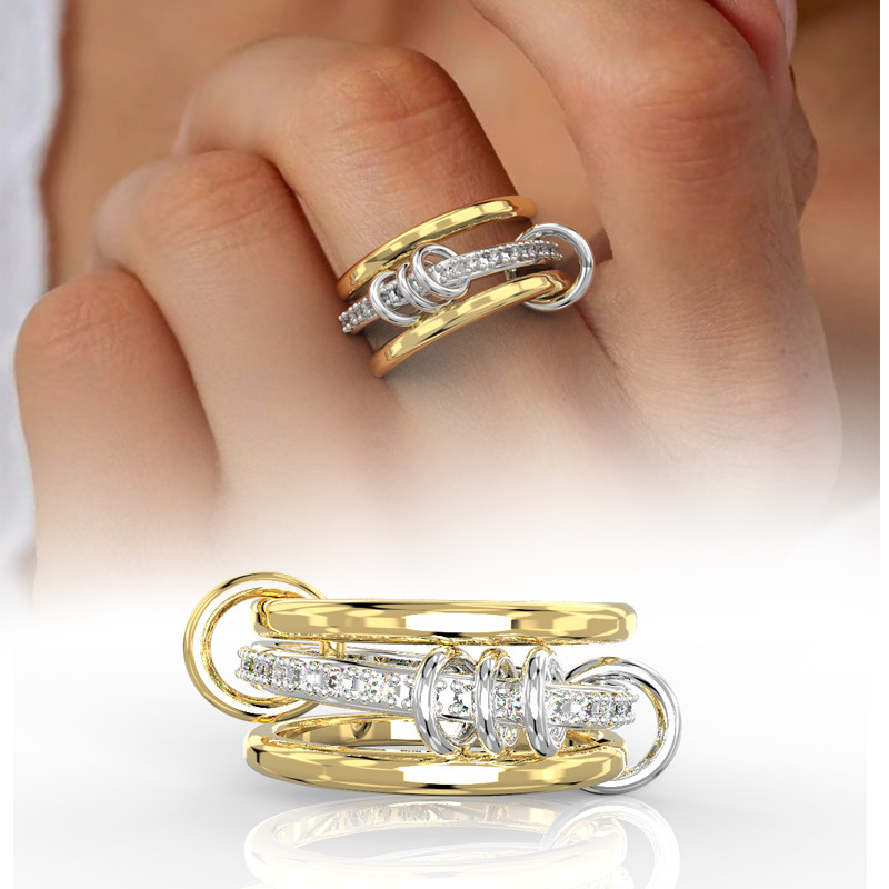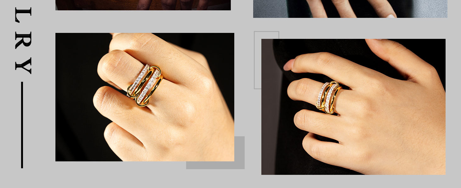 Elegant Interlocking Crystal Chain Ring for Women