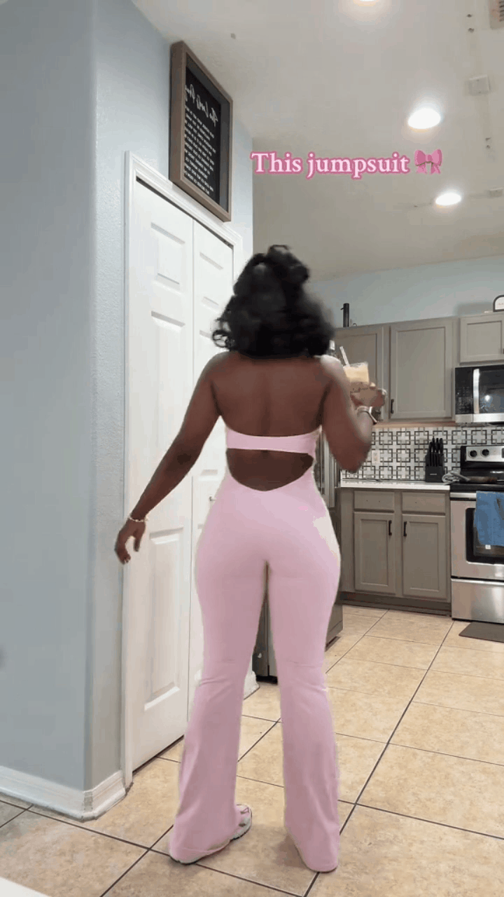 Lace Halter Neck One-Piece Yoga Jumpsuit
