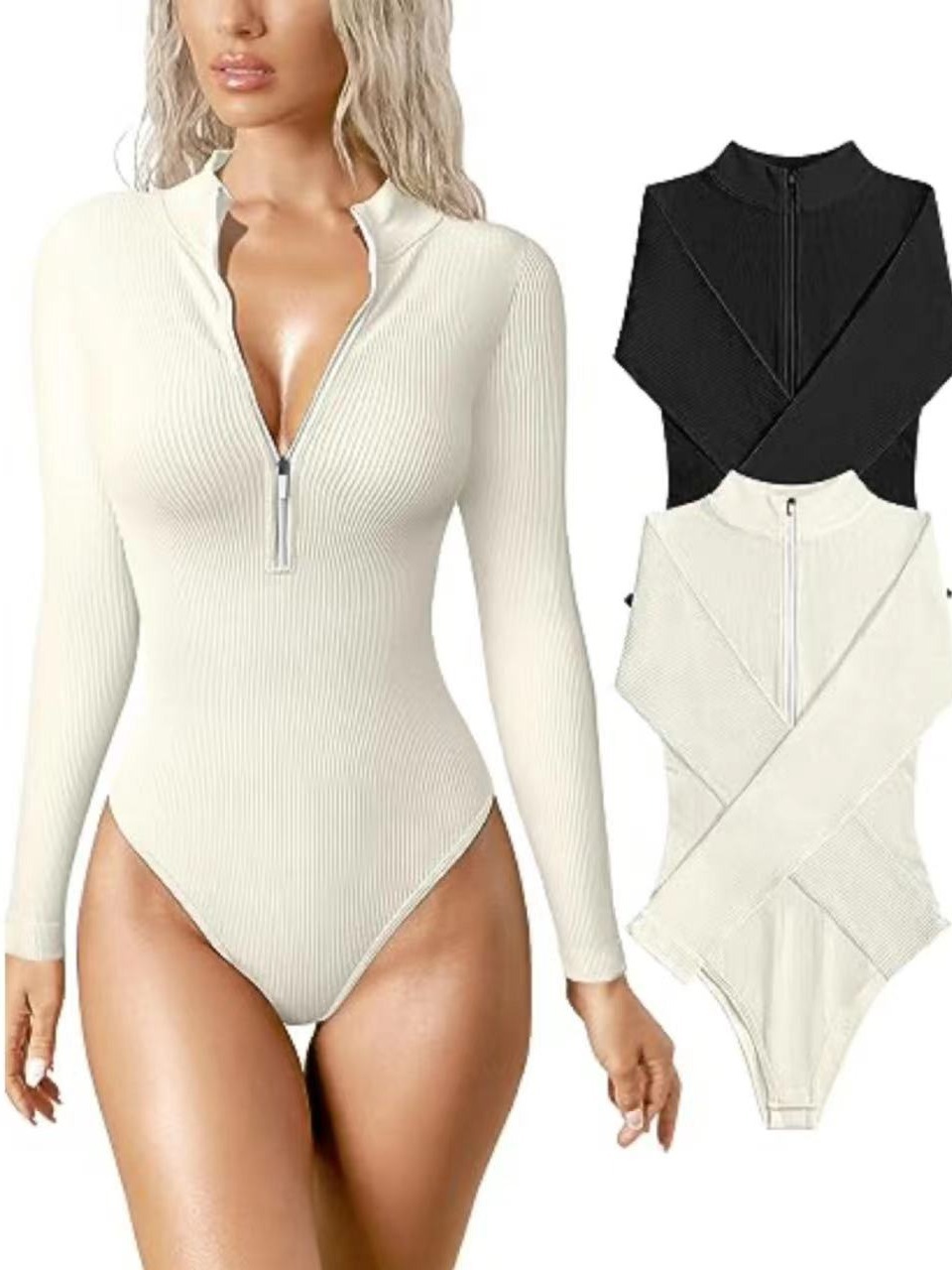 Long-Sleeve Ribbed Sexy Bodysuit