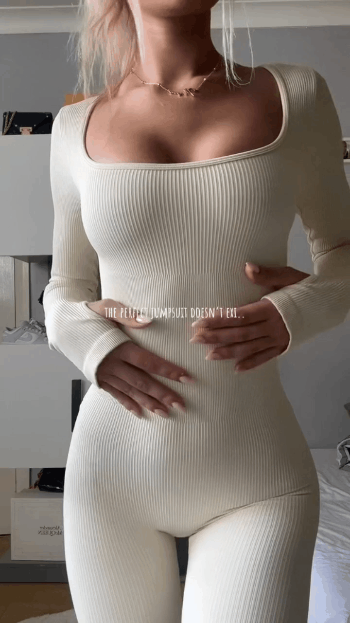 Ribbed Square-Neck Sculpting Jumpsuit for a Snatched, Curve-Lifting Fit