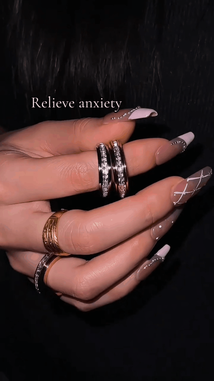 Designed with a satisfying spinning feature, this ring not only looks stunning but also helps relieve stress and keep your hands busy. A perfect blend of fashion and function.