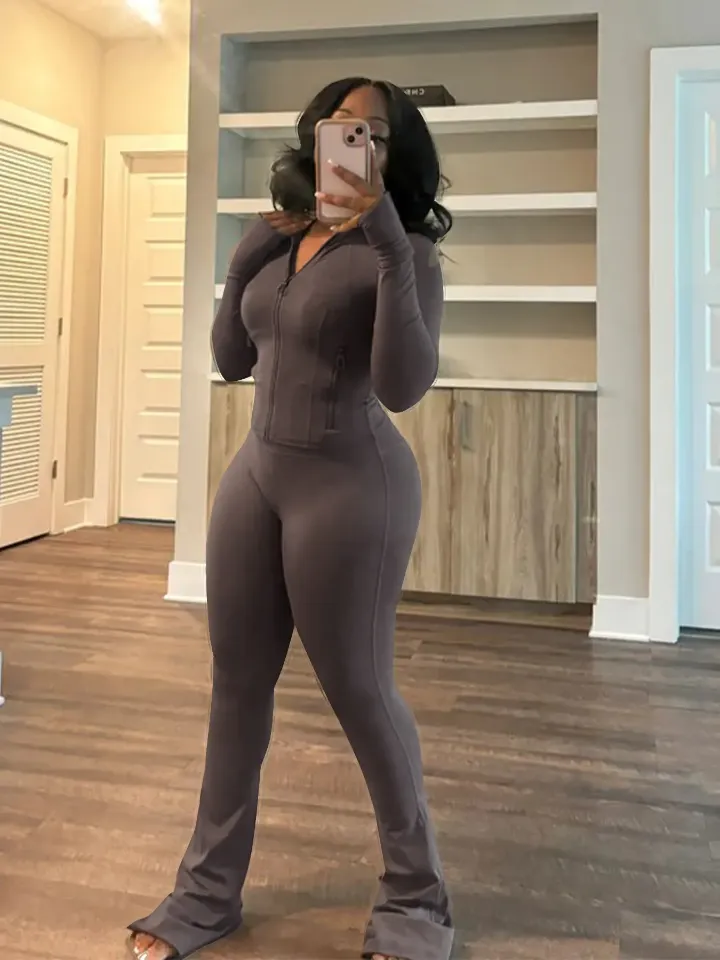 Sexy Long-Sleeve Flared Two-Piece Set for Women