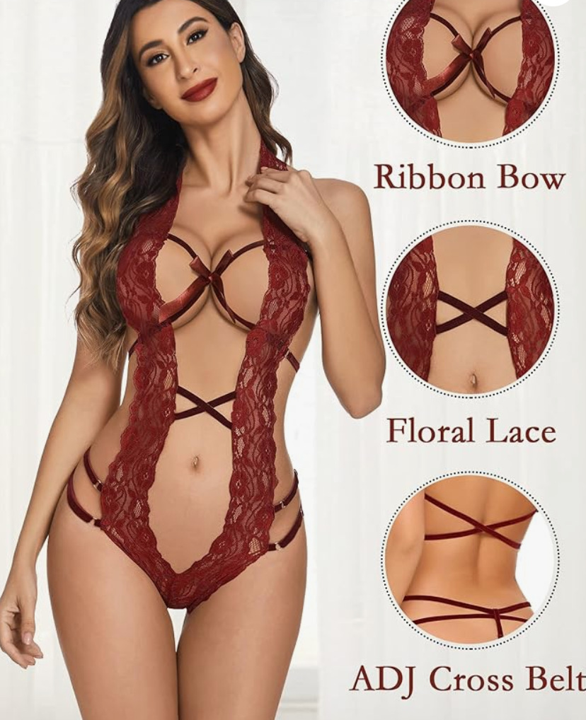 Sweet Bow Tie Lace Cut-Out One-Piece Teddy