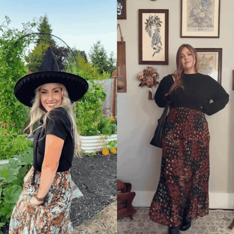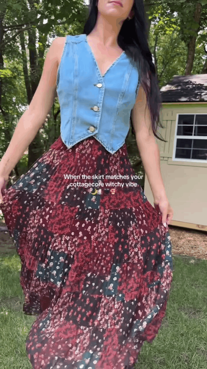 Halloween 🎃Witchy Skirt – Boho Floral Maxi Style